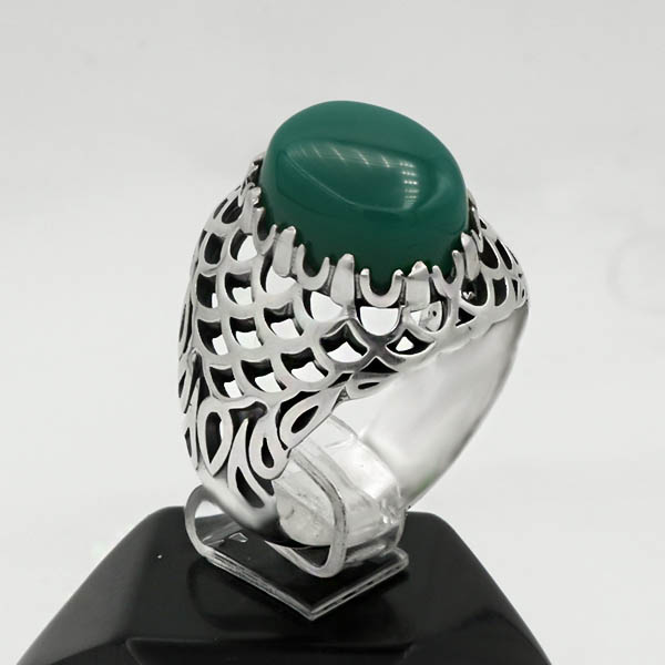 انگشتر عقیق سبز نقره مردانه طرح هورین