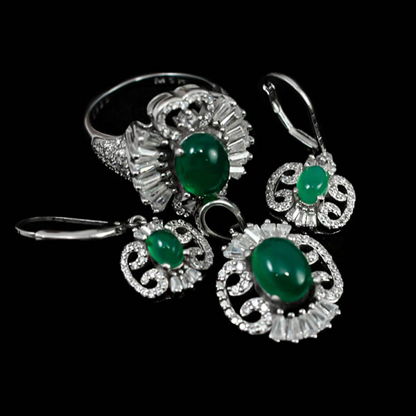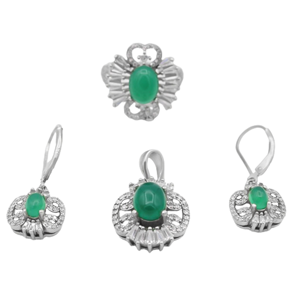 نیم ست عقیق سبز نقره زنانه طرح حورزاد