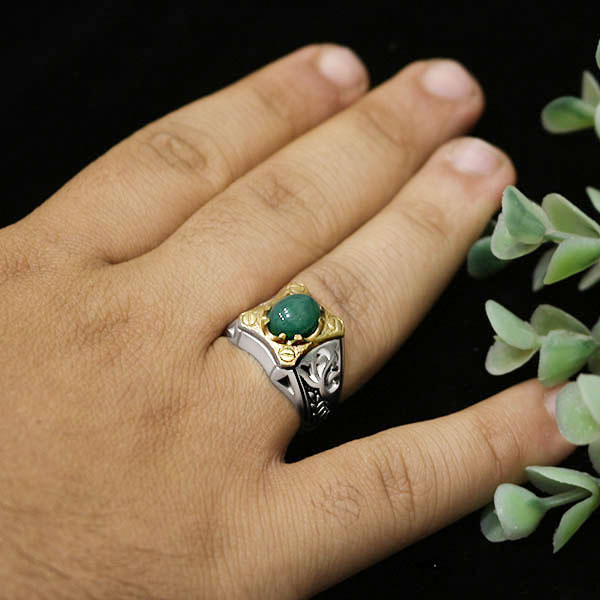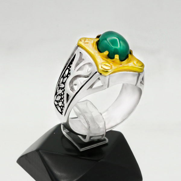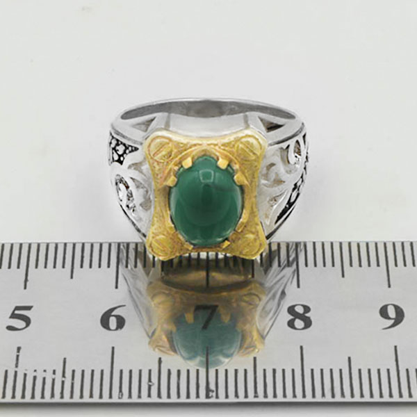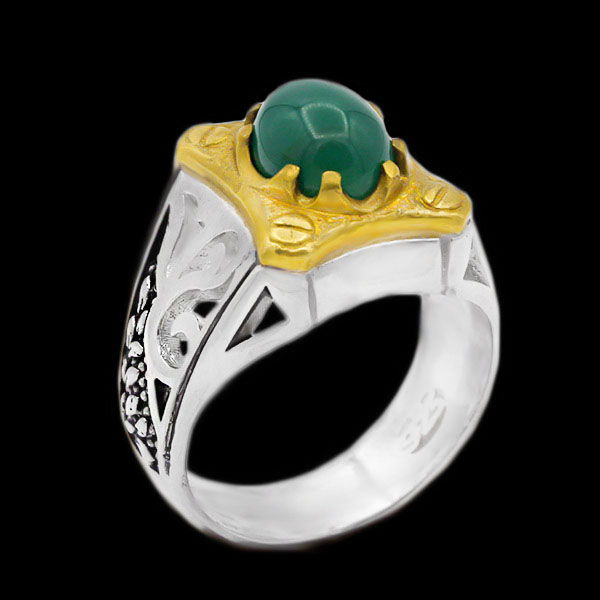 انگشتر عقیق سبز نقره مردانه طرح دور طلایی هوتن