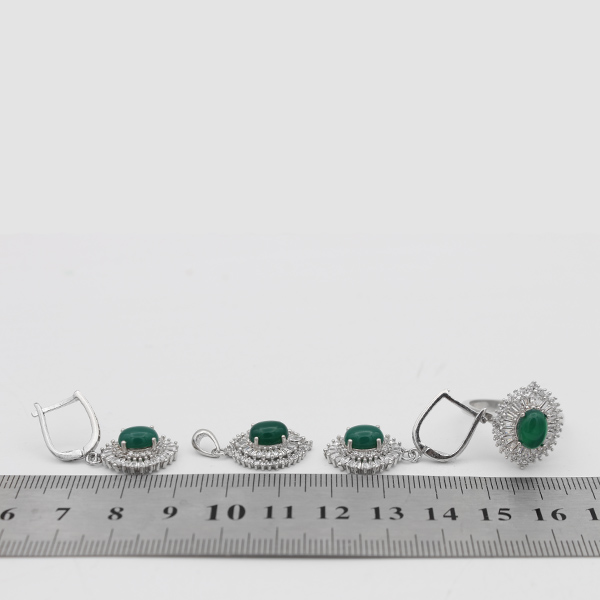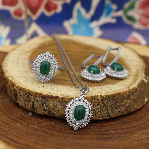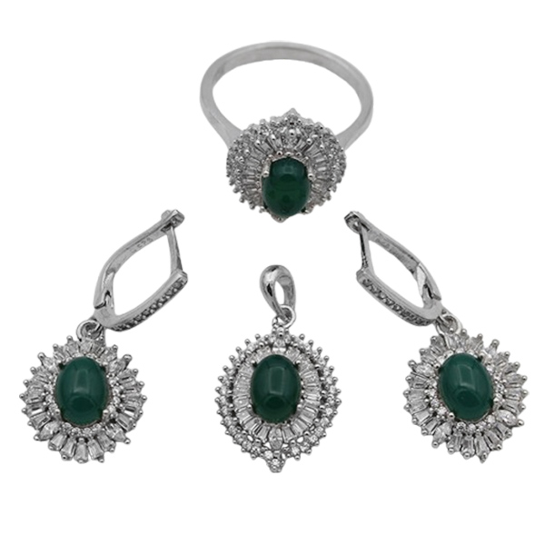 نیم ست عقیق سبز نقره زنانه طرح حسنا