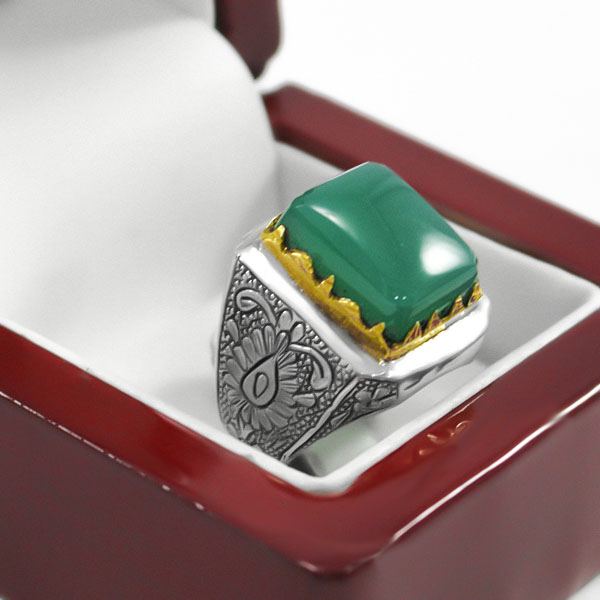 انگشتر عقیق سبز نقره مردانه طرح دور طلایی جنت