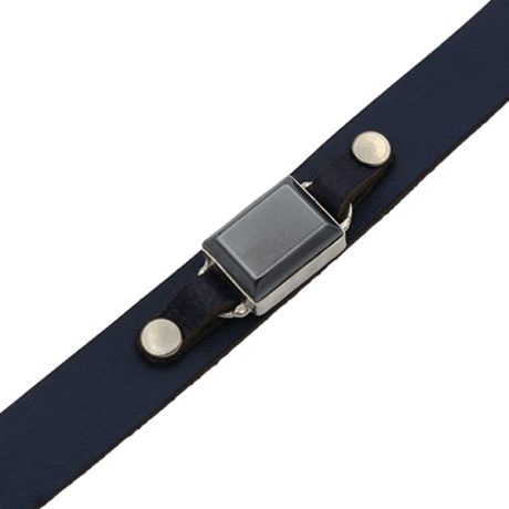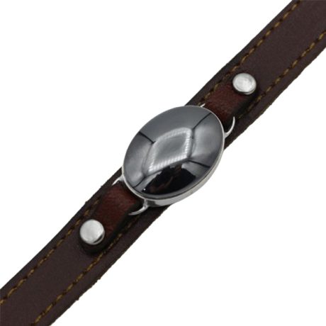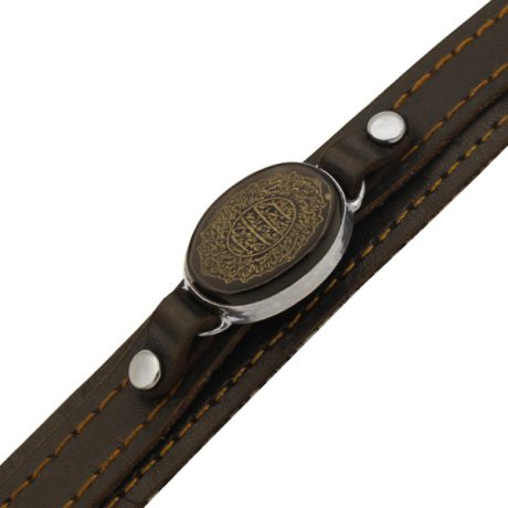 دستبند حدید صینی نقره چرم طبیعی مشکی دو لایه مردانه و زنانه طرح عین علی (ع) + حرز امام جواد (ع)