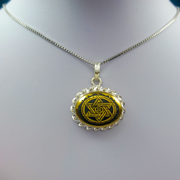 این گردنبند دست ساز به صورت دور پیچ با نگین حدید صینی ساخته شده است. نگین گردنبند حدید صینی اصل با حکاکی خاتم سلیمان (ع) می باشد، همچنین روی نگین به رنگ طلایی می باشد که بر زیبایی این گردنبند افزوده است، علاوه بر آن حکاکی خاتم سلیمان (ع) بسیار با ظرافت و بدون نقص انجام شده است. فریم گردنبند کاملا دست ساز بوده که دارای استحکام و کیفیت بالایی می باشد. جنس فریم گردنبند از نقره با عیار ۹۲۵ می باشد.