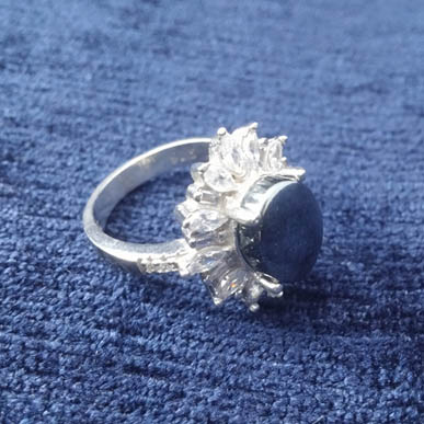 انگشتر نقره زنانه طرح فاخر مجلسی با نگین حدید صینی+حکاکی ذکر افزایش رزق و روزی
