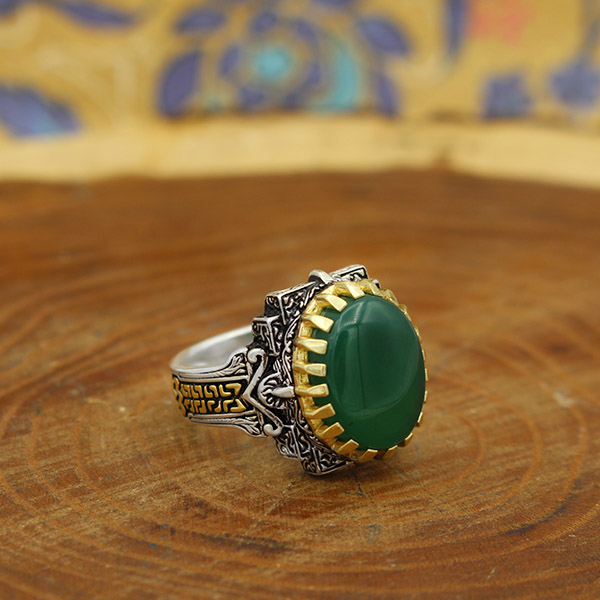 انگشتر عقیق سبز نقره مردانه طرح حکیم