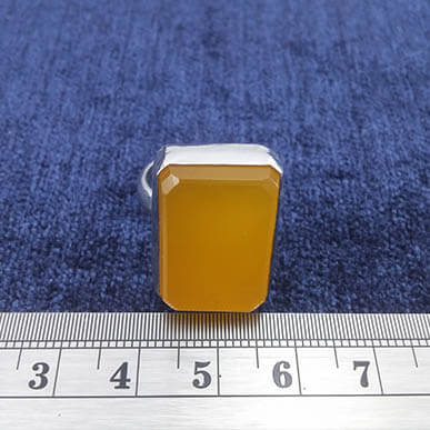 انگشتر چهار گوش و بسیار زیبا که مناسب مشکل پسندان است. طرح صفوی چهار گوش رکاب انگشتر زیبایی آن را صد چندان کرده است. جنس انگشتر از نقره عیار ۹۲۵ است و قابلیت سایز شدن برای هر سایز انگشتی امکان پذیر است. نگین انگشتر نیز از سنگ بسیار پر فضیلت شرف الشمس است (حکاکی ذکر پر فضیلت شرف شمس در پشت نگین زرد با آداب و در زمان مخصوص) خواص افزایش رزق و روزی، دفع چشم زخم، افزایش عزت و مقام و گشایش در امور  از جمله خواص مهم عقیق شرف الشمس می باشد. طرح چهار گوش و دور نگین ساده آن ارزش این انگشتر را چندین برابر کرده است.