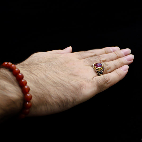 انگشتر یاقوت سرخ ست‌شده با تسبیح یا دستبند عقیق سرخ