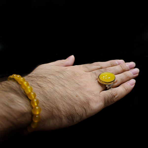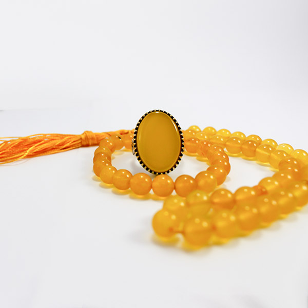 انگشتر شرف‌الشمس ست‌شده با تسبیح یا دستبند جید به رنگ زرد