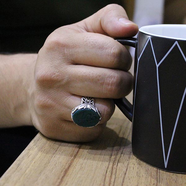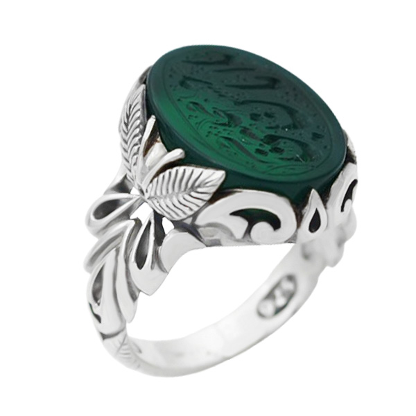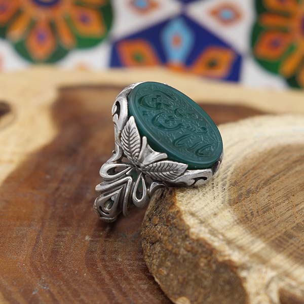 انگشتر عقیق سبز نقره مردانه طرح یا امام حسن مجتبی (ع)
