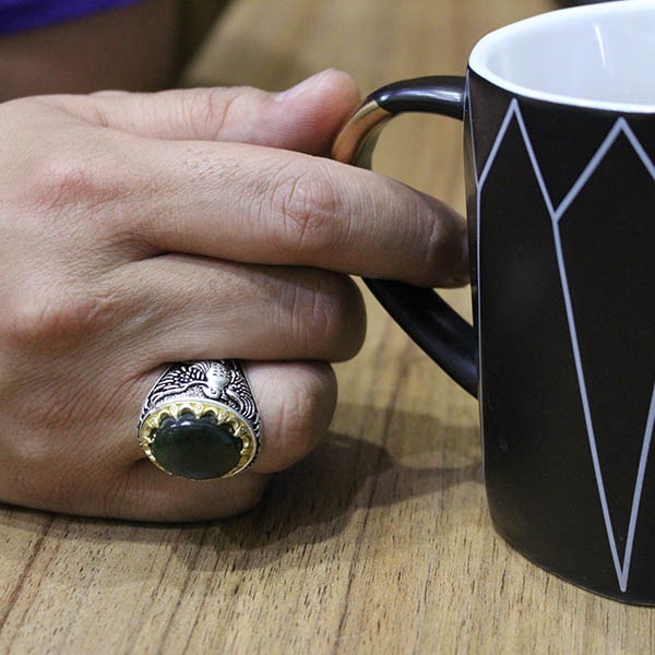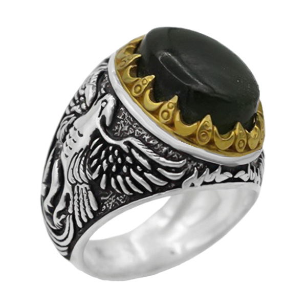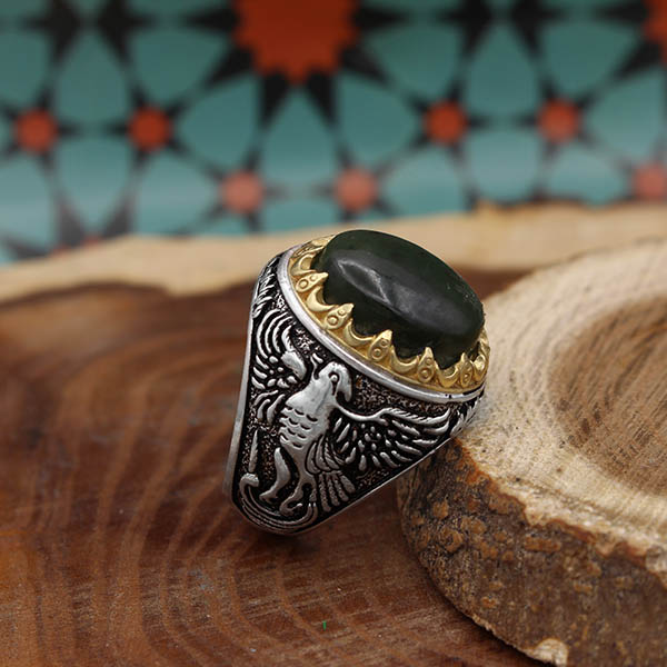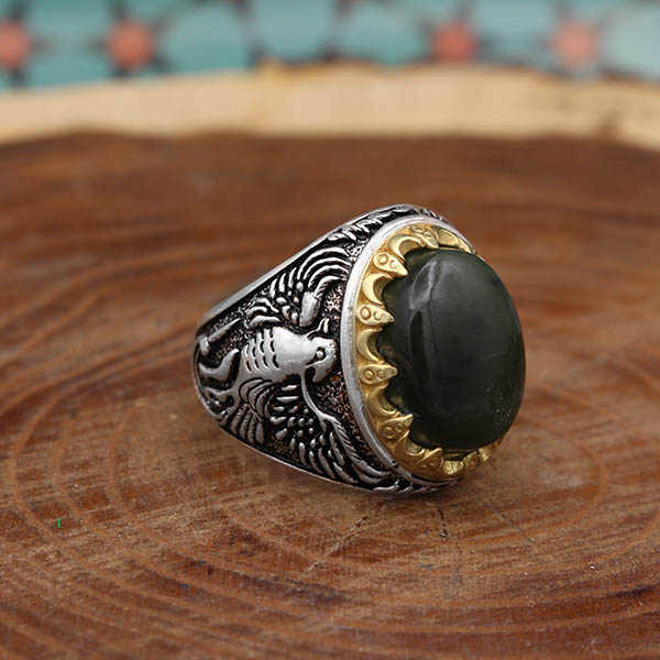 انگشتر یشم نقره مردانه طرح ققنوس
