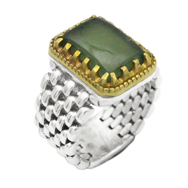 غالبا این گوهر همراه با نقره مانند انگشتر یشم یا گردنبند یشم مورد استفاده قرار میگیرد. خوب است بدانید که خود فلز نقره نیز دارای خواص بسیاری است. نقره در بهبودی و شکل دهی استخوان، فرم دهی و بهبود پوست تاثیر ویژه ای دارد. این فلز بسیار بیشتر از سایر مواد ضد عفونی تاثیر گزار است و ۶۵۰ میکروب را از بین می برد بدون این که مانند دیگر ضد عفونی کننده ها عوارض بعدی بر جای نهد. ذکر شده است که لا تختموا بغیر الفضه فَانَّ رسول الله (ص) قال :” ما طهر الله یداً فیها خاتم حدید" به این منعنی که "جز انگشتر نقره به دست نکنید چرا که رسول خدا (ص) فرمودند خداوند پاک نکند دستی را که در آن انگشتری از جنس آهن می باشد." لذا در هنگامی که جواهرات نقره را به همراه دارید کمک می کنند که انرژی بیشتری انباشته گردد. همچنین به نظر می رسد نقره به اجتناب از تمایل های کسالت آور کمک می نماید و در نتیجه استفاده از نقره ممکن است شما احساس تازگی و نیرومندی نمایید. همچنین نقره به شما کمک می کند که افکار خود را متمرکز نمایید. همان طور که شما ممکن است قبلا خوانده باشید نقره از طریق پوست جذب می شود و اثر تسکین درد دارد، به همین دلیل دستبندهای نقره در جوامع خاصی بسیار محبوب می باشند.