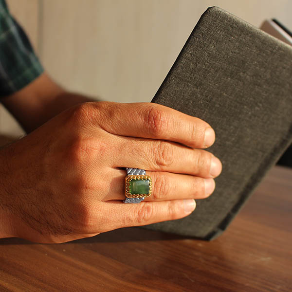 انگشتر یشم نقره مردانه طرح ماتیار