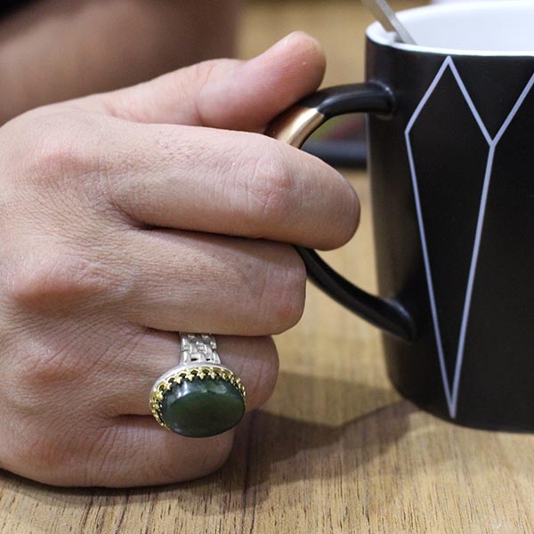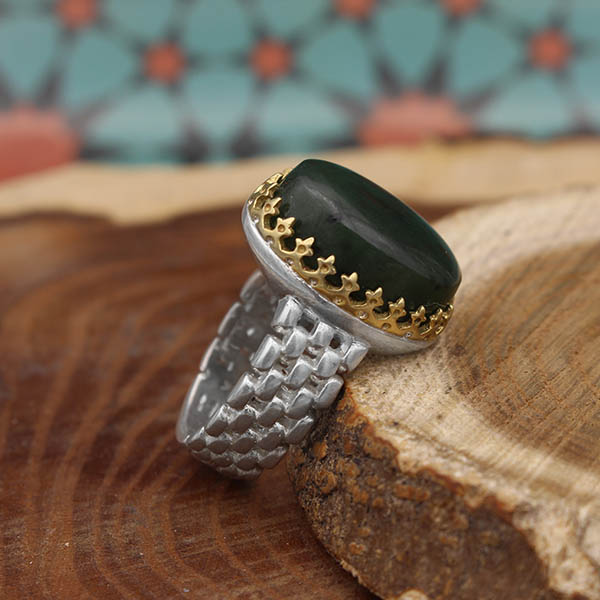 انگشتر یشم نقره مردانه طرح رادان