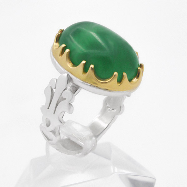 انگشتر یشم نقره مردانه طرح دور طلایی رادبه