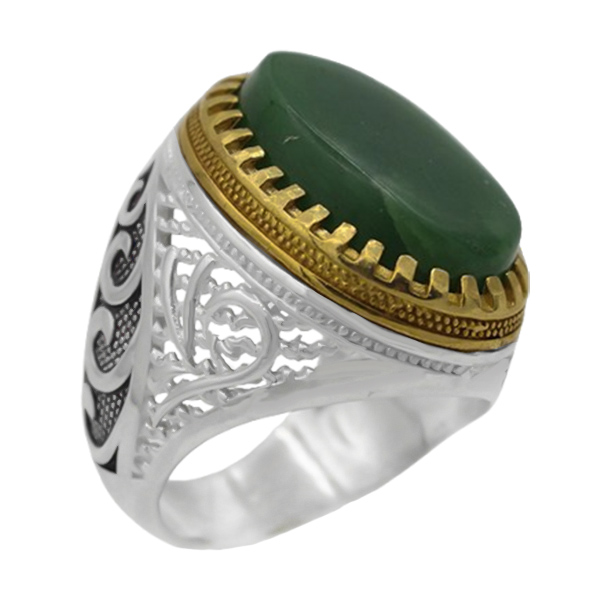 غالبا این گوهر همراه با نقره مانند انگشتر یشم یا گردنبند یشم مورد استفاده قرار میگیرد. خوب است بدانید که خود فلز نقره نیز دارای خواص بسیاری است. نقره در بهبودی و شکل دهی استخوان، فرم دهی و بهبود پوست تاثیر ویژه ای دارد. این فلز بسیار بیشتر از سایر مواد ضد عفونی تاثیر گزار است و ۶۵۰ میکروب را از بین می برد بدون این که مانند دیگر ضد عفونی کننده ها عوارض بعدی بر جای نهد. ذکر شده است که لا تختموا بغیر الفضه فَانَّ رسول الله (ص) قال :” ما طهر الله یداً فیها خاتم حدید" به این منعنی که "جز انگشتر نقره به دست نکنید چرا که رسول خدا (ص) فرمودند خداوند پاک نکند دستی را که در آن انگشتری از جنس آهن می باشد." لذا در هنگامی که جواهرات نقره را به همراه دارید کمک می کنند که انرژی بیشتری انباشته گردد. همچنین به نظر می رسد نقره به اجتناب از تمایل های کسالت آور کمک می نماید و در نتیجه استفاده از نقره ممکن است شما احساس تازگی و نیرومندی نمایید. همچنین نقره به شما کمک می کند که افکار خود را متمرکز نمایید. همان طور که شما ممکن است قبلا خوانده باشید نقره از طریق پوست جذب می شود و اثر تسکین درد دارد، به همین دلیل دستبندهای نقره در جوامع خاصی بسیار محبوب می باشند.