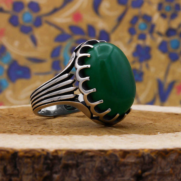 انگشتر یشم نقره مردانه طرح شیبان