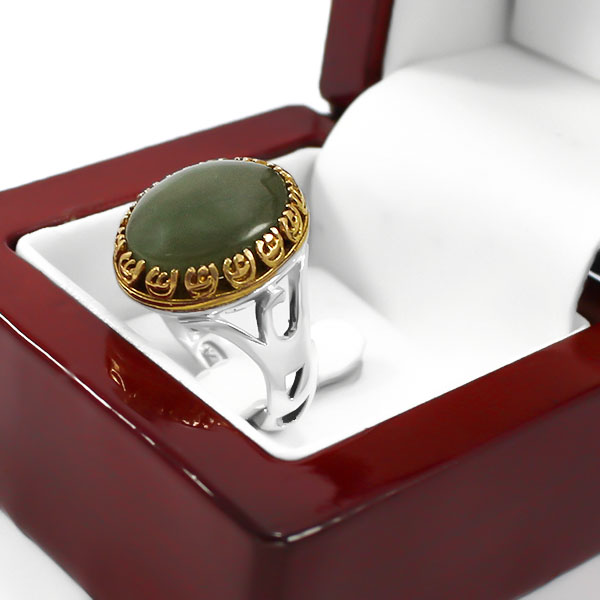 انگشتر یشم یمنی نقره مردانه طرح دورطلایی یاعلی (ع)