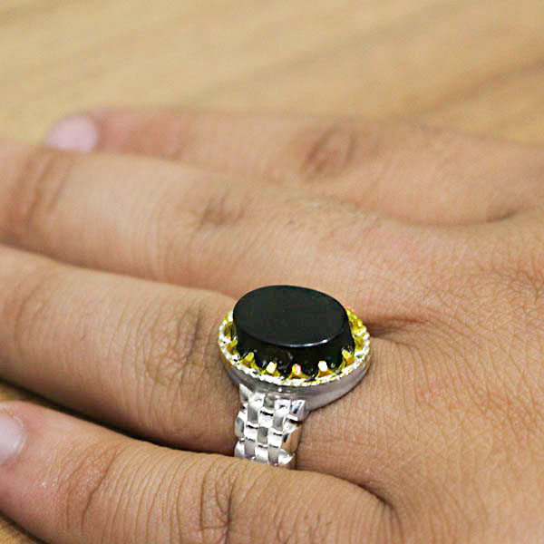 انگشتر یشم نقره مردانه طرح دور طلایی یاسین