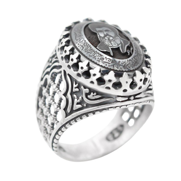 انگشتر حدید صینی نقره مردانه طرح سید حسن نصرالله + آیت الکرسی