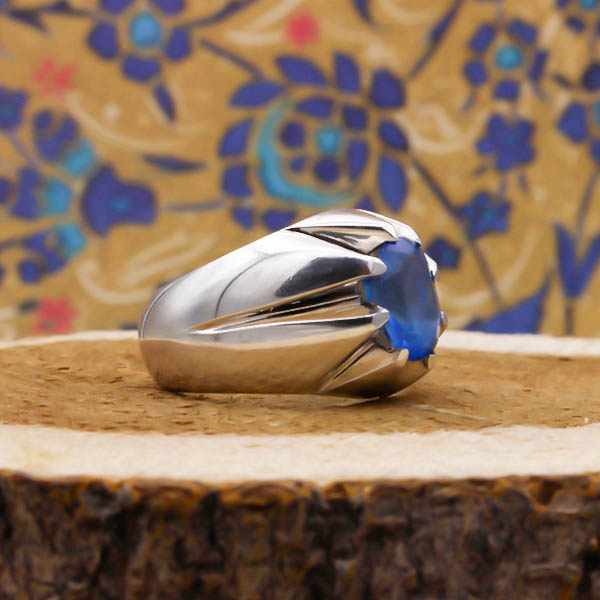 انگشتر توپاز الماس تراش نقره مردانه طرح جهانیار