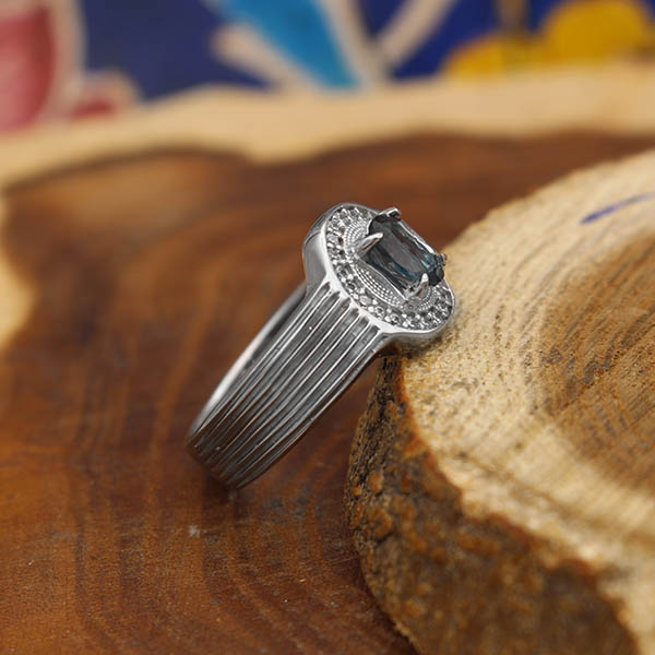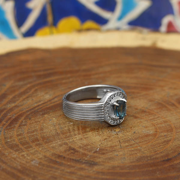 انگشتر توپاز الماس تراش نقره مردانه طرح کسرا