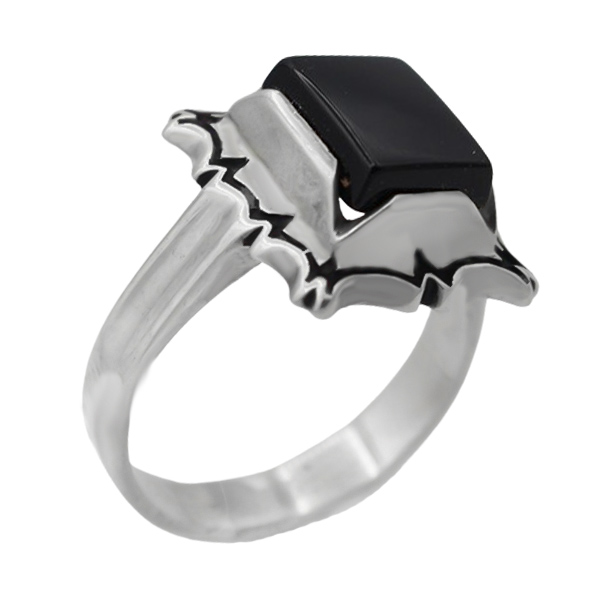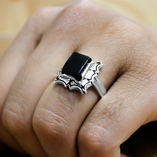 انگشتر عقیق مشکی نقره دست ساز طرح کایا