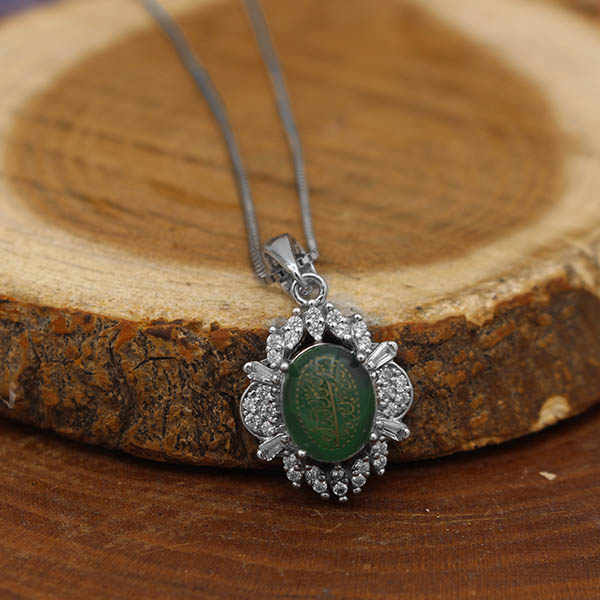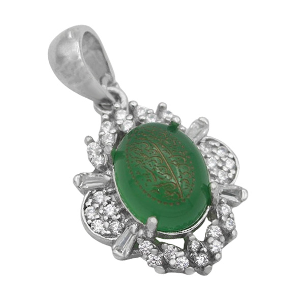 گردنبند عقیق سبز نقره زنانه طرح کیانا + حکاکی آیه من یتق الله