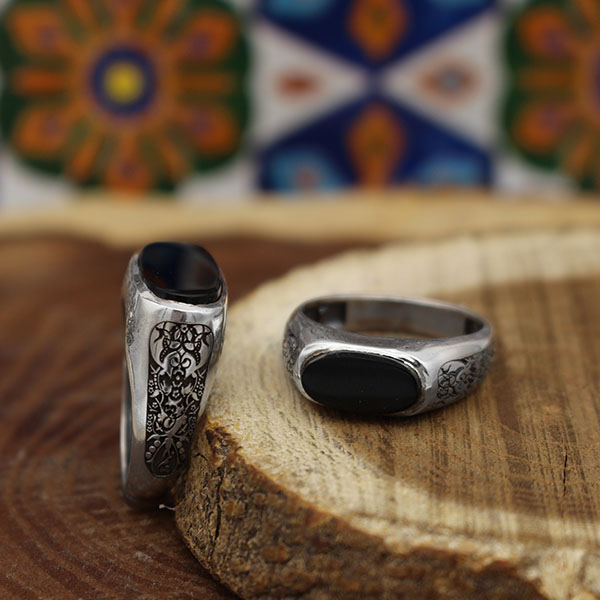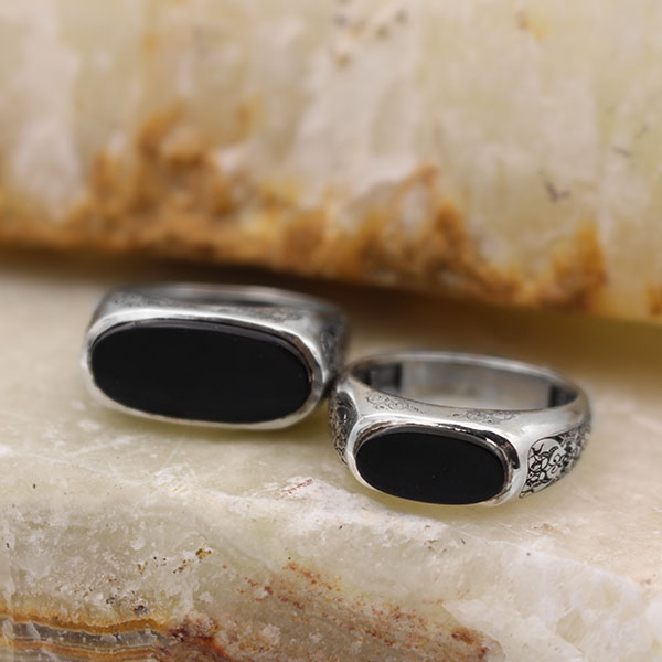 انگشتر ست عقیق مشکی نقره مردانه و زنانه طرح کیان