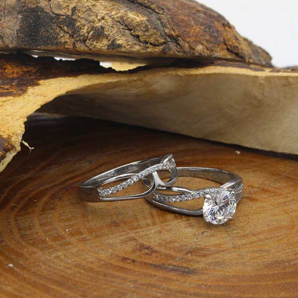 حلقه و پشت حلقه نقره زنانه طرح لمیس