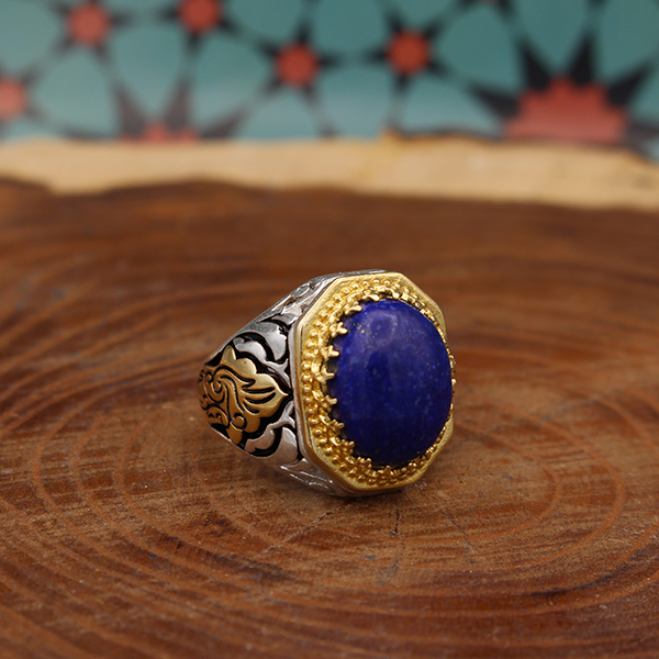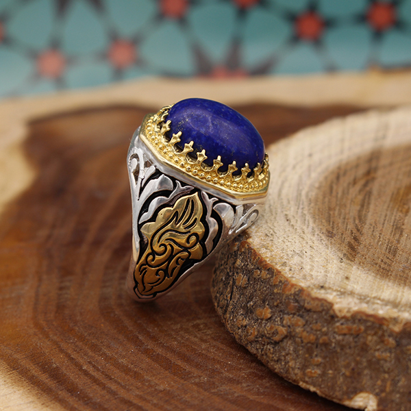 انگشتر لاجورد نقره مردانه طرح افلاک