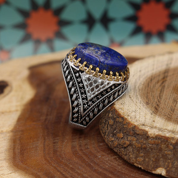 انگشتر لاجورد نقره مردانه طرح برزان