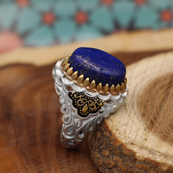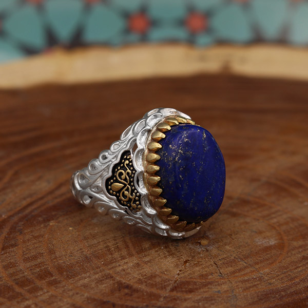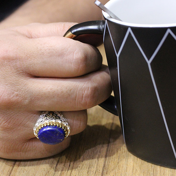 انگشتر لاجورد نقره مردانه طرح عرفان 2