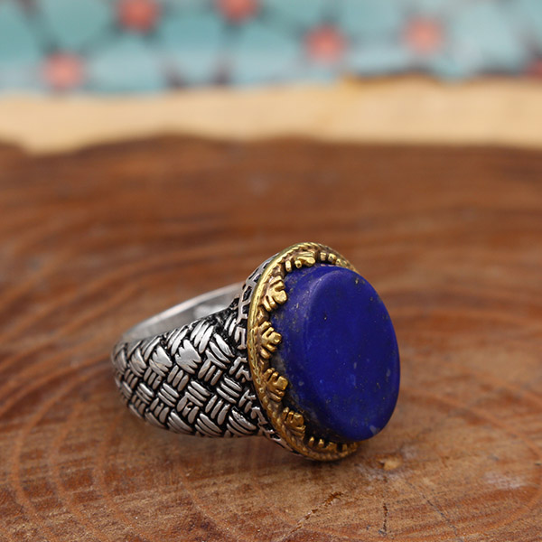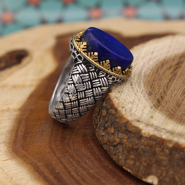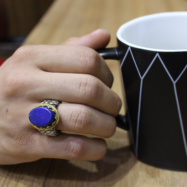 انگشتر لاجورد نقره مردانه طرح خشایار