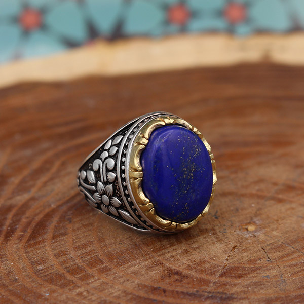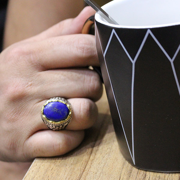 انگشتر لاجورد نقره مردانه طرح نامی