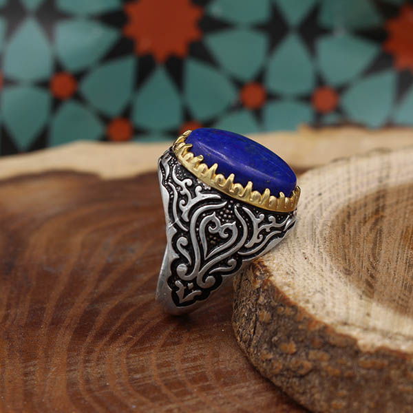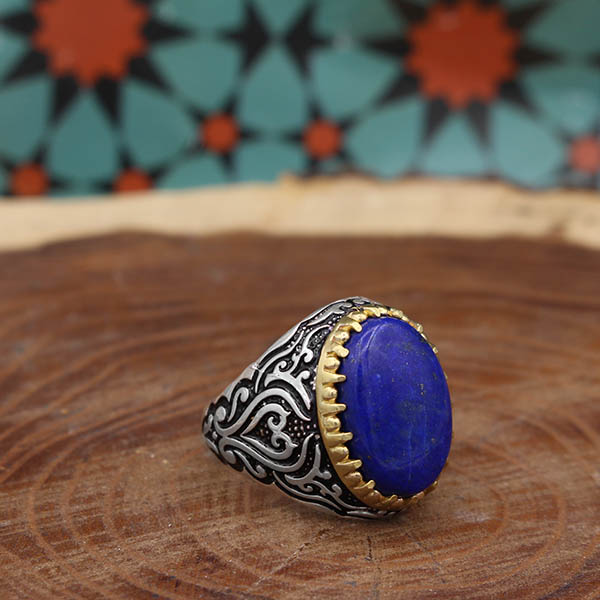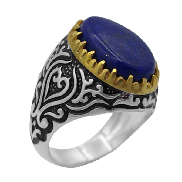 انگشتر لاجورد نقره مردانه طرح نوروز