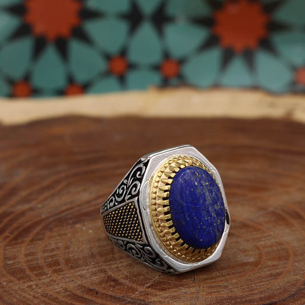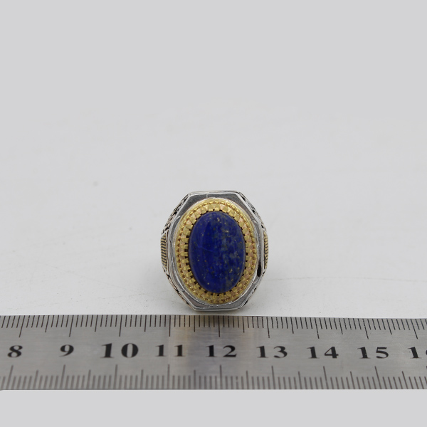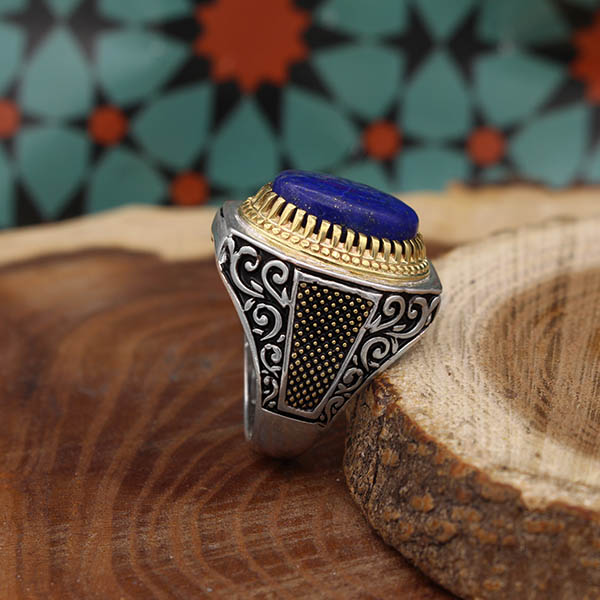 انگشتر لاجورد نقره مردانه طرح سعادت