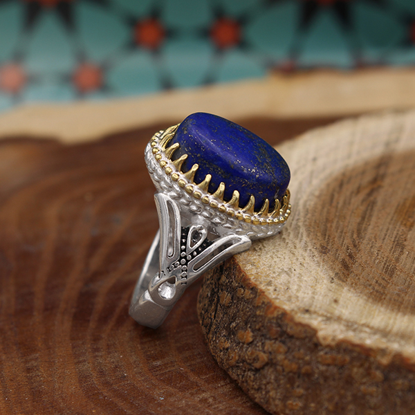 انگشتر لاجورد نقره مردانه طرح سردار دلها
