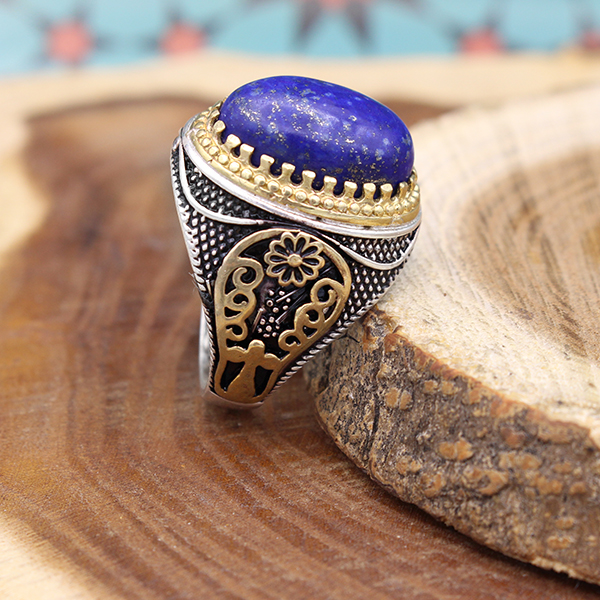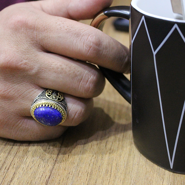 انگشتر لاجورد نقره مردانه طرح سپهر