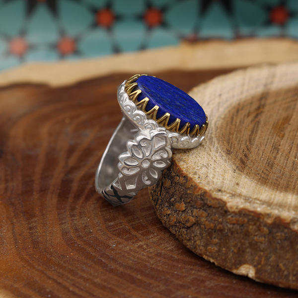 انگشتر لاجورد نقره مردانه طرح سبحان