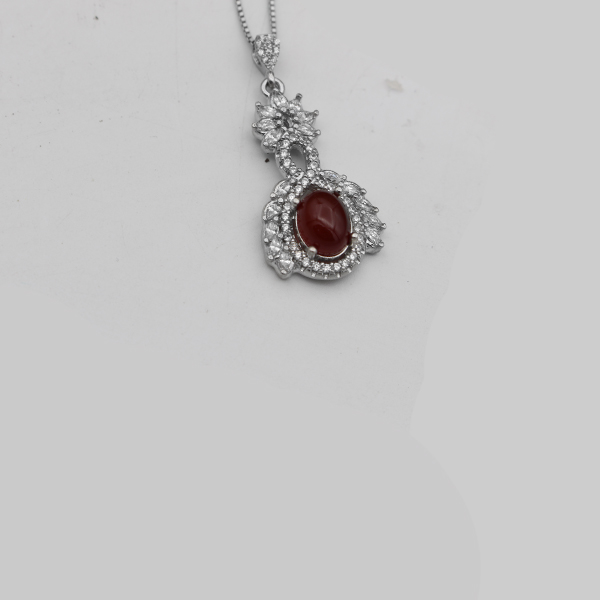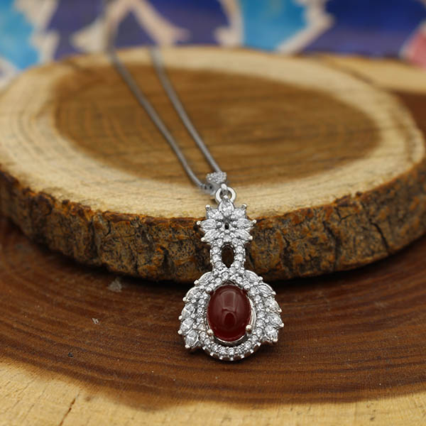 گردنبند عقیق سرخ نقره زنانه طرح مدینه