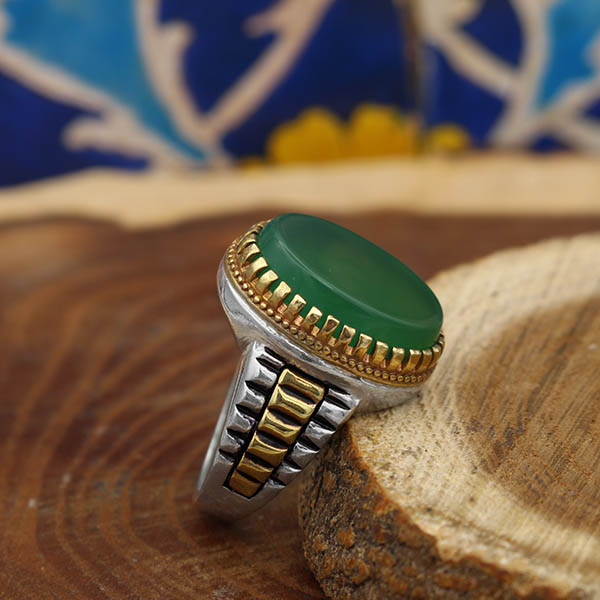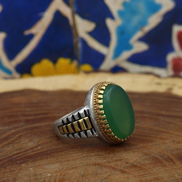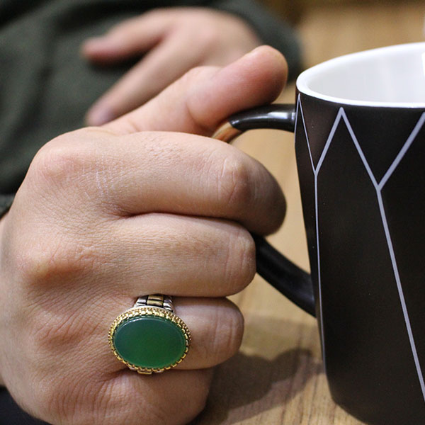 انگشتر عقیق سبز نقره مردانه طرح ماهان