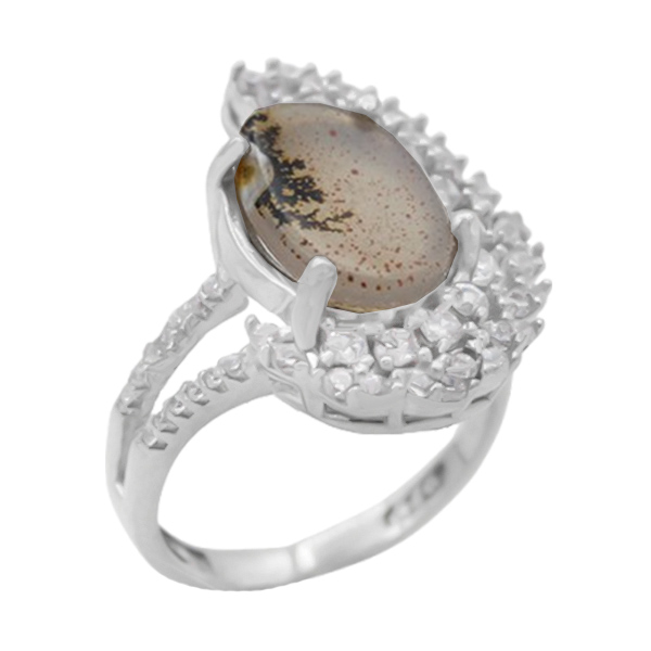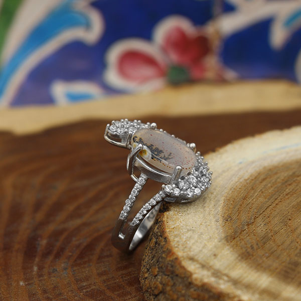 انگشتر عقیق شجر نقره زنانه طرح ماهی