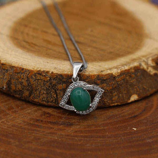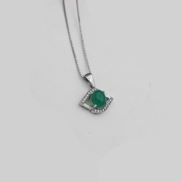 گردنبند عقیق سبز نقره زنانه طرح مهلا