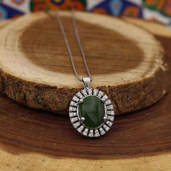 گردنبند یشم نقره زنانه طرح مهتاب