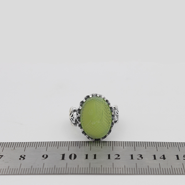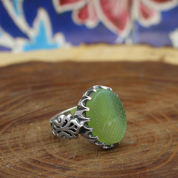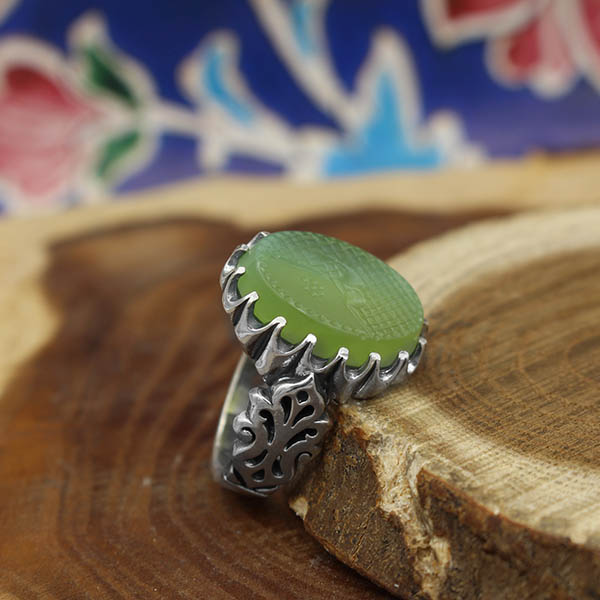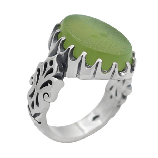 انگشتر عقیق سبز نقره مردانه طرح ملک + حکاکی