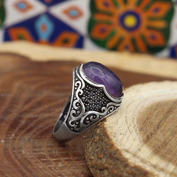۴- در مجموع این انگشتر بنفش یک محافظ و پاکساز روانی است. همچنین اگر شخصی بیمار باشد قرار دادن قطعه ای از این گوهر در کنار خود می تواند محیط روانی بدن فرد و سطوح انرژی را در سطحی از تعادل و بهزیستی نگه دارد.
