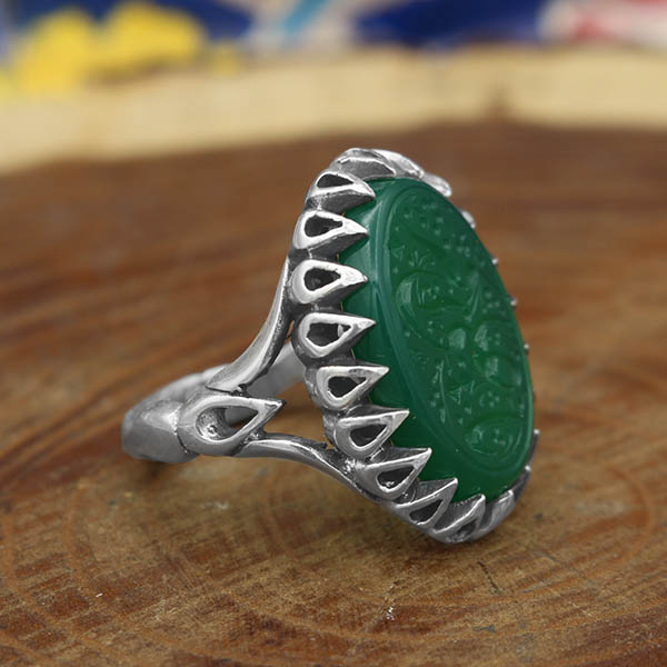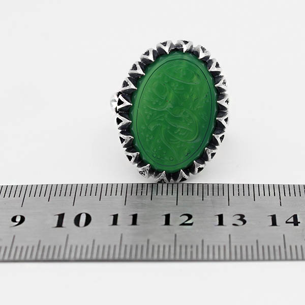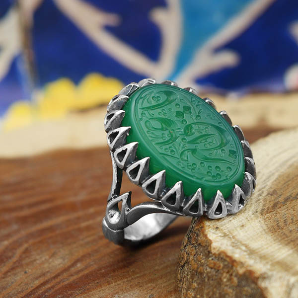 انگشتر عقیق سبز نقره مردانه طرح مهران + حکاکی یا علی اکبر (ع)