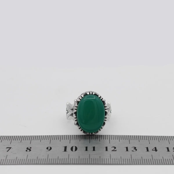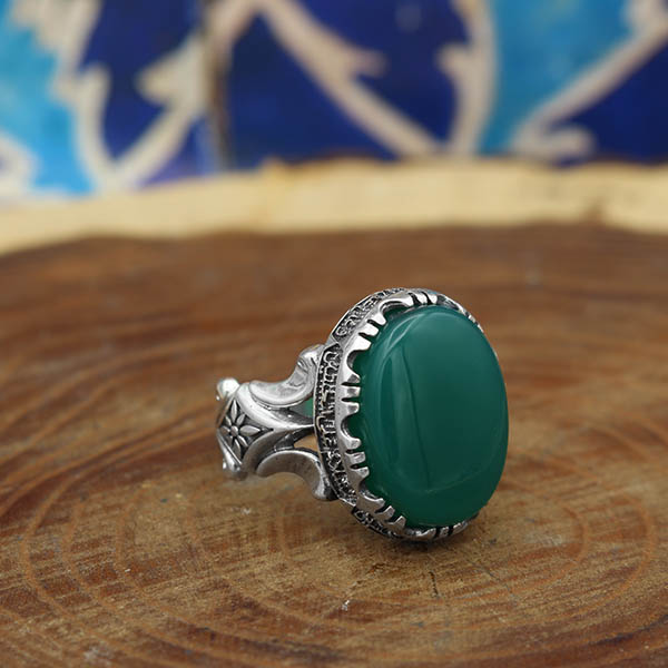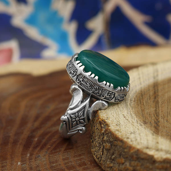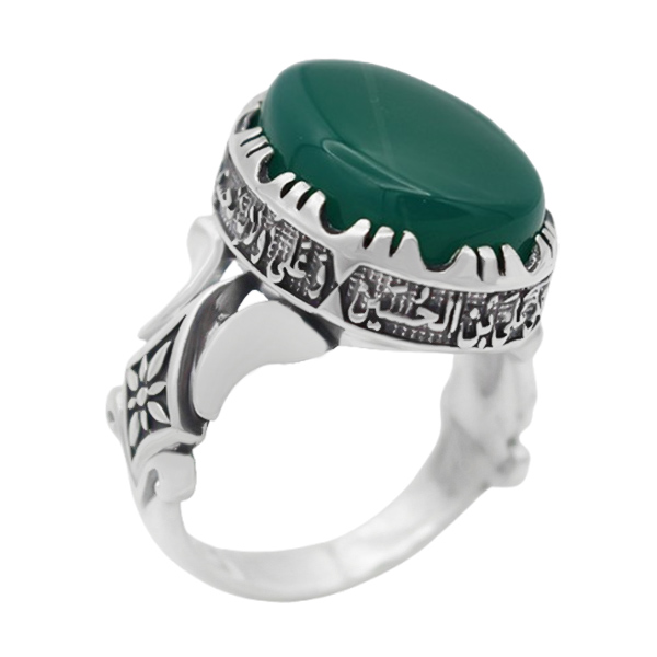 انگشتر عقیق سبز نقره مردانه طرح مقدس