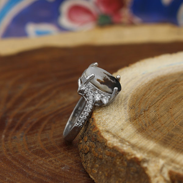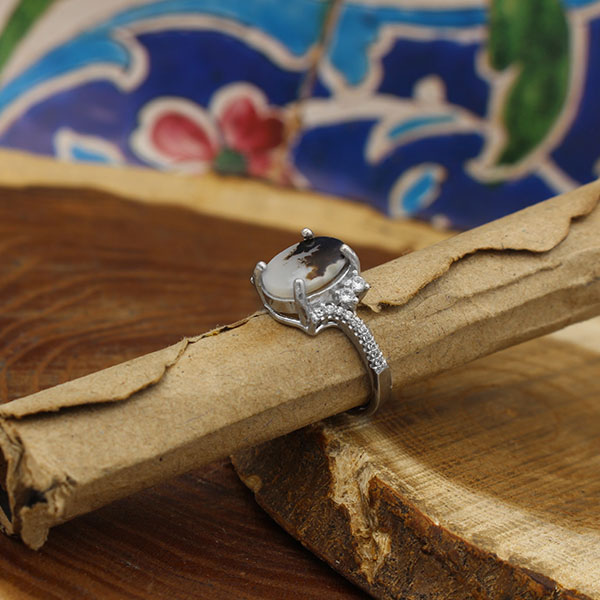 انگشتر عقیق شجر نقره زنانه طرح نسرین