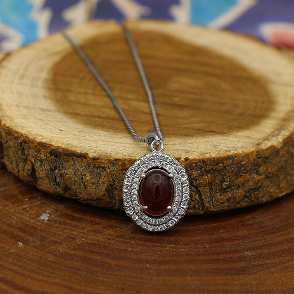 گردنبند عقیق سرخ نقره زنانه طرح نازی